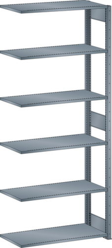 "longDescription": "LISTA Universalregal, BxTxH: 1000x400x2500mm, Anzahl Fachböden: 6 Fachböden geschlitzt, 25mm stark, Ausstattung: Anbaufeld mit 1 Regalstützenpaar inkl. 3 Tiefenstreben, Fachlast: 160kg, Max. Feldlast: 2800kg, Farbe: Grau metallic NCS S 6502-B. Schnelle und einfache Montage durch schraubenlose Steckmontage aller Grundbauteile und Fachböden. Jederzeit anpassbar an neues Lagergut durch den flexiblen Ein- und Umbau von Fachböden, Schubladen und Einzelteilen im 25-mm-Raster. Maximale Regalausnutzung dank einer Kantungshöhe der Fachböden von nur 25 mm für volle Ordnerhöhe<br>",