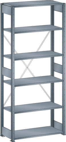 "longDescription": "LISTA Universalregal, BxTxH: 1000x500x2500mm, Anzahl Fachböden: 6 Fachböden geschlitzt, 25mm stark, Ausstattung: Grundfeld mit 2 Regalstützenpaare inkl. 6 Tiefenstreben, 1 Diagonalkreuz verzinkt, Fachlast: 160kg, Max. Feldlast: 2800kg, Farbe: Grau metallic NCS S 6502-B. Schnelle und einfache Montage durch schraubenlose Steckmontage aller Grundbauteile und Fachböden. Jederzeit anpassbar an neues Lagergut durch den flexiblen Ein- und Umbau von Fachböden, Schubladen und Einzelteilen im 25-mm-Raster. Maximale Regalausnutzung dank einer Kantungshöhe der Fachböden von nur 25 mm für volle Ordnerhöhe<br>",