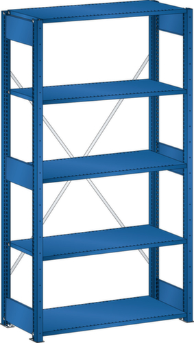 "longDescription": "LISTA Universalregal, BxTxH: 1000x400x2000mm, Anzahl Fachböden: 5 Fachböden geschlitzt, 25mm stark, Ausstattung: Grundfeld mit 2 Regalstützenpaare inkl. 6 Tiefenstreben, 1 Diagonalkreuz verzinkt, Fachlast: 220kg, Max. Feldlast: 2800kg, Farbe: Signalblau RAL 5005. Schnelle und einfache Montage durch schraubenlose Steckmontage aller Grundbauteile und Fachböden. Jederzeit anpassbar an neues Lagergut durch den flexiblen Ein- und Umbau von Fachböden, Schubladen und Einzelteilen im 25-mm-Raster. Maximale Regalausnutzung dank einer Kantungshöhe der Fachböden von nur 25 mm für volle Ordnerhöhe<br>",