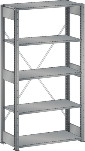 "longDescription": "LISTA Universalregal, BxTxH: 1000x500x2000mm, Anzahl Fachböden: 5 Fachböden geschlitzt, 25mm stark, Ausstattung: Grundfeld mit 2 Regalstützenpaare inkl. 6 Tiefenstreben, 1 Diagonalkreuz verzinkt, Fachlast: 220kg, Max. Feldlast: 2800kg, Farbe: Taubengrau NCS S 4502-B. Schnelle und einfache Montage durch schraubenlose Steckmontage aller Grundbauteile und Fachböden. Jederzeit anpassbar an neues Lagergut durch den flexiblen Ein- und Umbau von Fachböden, Schubladen und Einzelteilen im 25-mm-Raster. Maximale Regalausnutzung dank einer Kantungshöhe der Fachböden von nur 25 mm für volle Ordnerhöhe<br>",