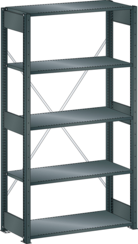 "longDescription": "LISTA Universalregal, BxTxH: 1000x600x2000mm, Anzahl Fachböden: 5 Fachböden geschlitzt, 25mm stark, Ausstattung: Grundfeld mit 2 Regalstützenpaare inkl. 6 Tiefenstreben, 1 Diagonalkreuz verzinkt, Fachlast: 220kg, Max. Feldlast: 2800kg, Farbe: Schwarz NCS S 9000-N. Schnelle und einfache Montage durch schraubenlose Steckmontage aller Grundbauteile und Fachböden. Jederzeit anpassbar an neues Lagergut durch den flexiblen Ein- und Umbau von Fachböden, Schubladen und Einzelteilen im 25-mm-Raster. Maximale Regalausnutzung dank einer Kantungshöhe der Fachböden von nur 25 mm für volle Ordnerhöhe<br>",