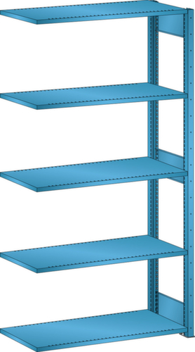 "longDescription": "LISTA Universalregal, BxTxH: 1000x600x2000mm, Anzahl Fachböden: 5 Fachböden geschlitzt, 25mm stark, Ausstattung: Anbaufeld mit 1 Regalstützenpaar inkl. 3 Tiefenstreben, Fachlast: 220kg, Max. Feldlast: 2800kg, Farbe: Lichtblau RAL 5012. Schnelle und einfache Montage durch schraubenlose Steckmontage aller Grundbauteile und Fachböden. Jederzeit anpassbar an neues Lagergut durch den flexiblen Ein- und Umbau von Fachböden, Schubladen und Einzelteilen im 25-mm-Raster. Maximale Regalausnutzung dank einer Kantungshöhe der Fachböden von nur 25 mm für volle Ordnerhöhe<br>",
