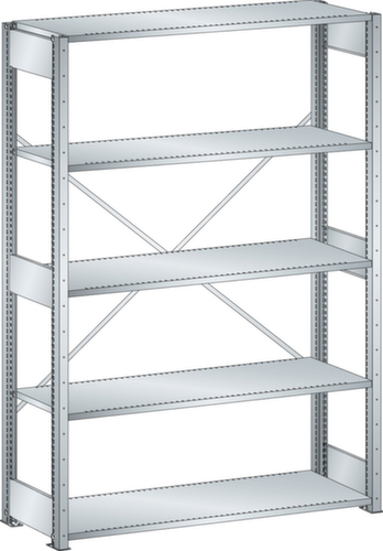 "longDescription": "LISTA Universalregal, BxTxH: 1300x400x2000mm, Anzahl Fachböden: 5 Fachböden geschlitzt, 25mm stark, Ausstattung: Grundfeld mit 2 Regalstützenpaare inkl. 6 Tiefenstreben, 1 Diagonalkreuz verzinkt, Fachlast: 220kg, Max. Feldlast: 2800kg, Farbe: Lichtgrau RAL 7035. Schnelle und einfache Montage durch schraubenlose Steckmontage aller Grundbauteile und Fachböden. Jederzeit anpassbar an neues Lagergut durch den flexiblen Ein- und Umbau von Fachböden, Schubladen und Einzelteilen im 25-mm-Raster. Maximale Regalausnutzung dank einer Kantungshöhe der Fachböden von nur 25 mm für volle Ordnerhöhe<br>",