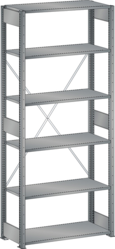 "longDescription": "LISTA Universalregal, BxTxH: 1000x400x2500mm, Anzahl Fachböden: 6 Fachböden geschlitzt, 25mm stark, Ausstattung: Grundfeld mit 2 Regalstützenpaare inkl. 6 Tiefenstreben, 1 Diagonalkreuz verzinkt, Fachlast: 220kg, Max. Feldlast: 2800kg, Farbe: Taubengrau NCS S 4502-B. Schnelle und einfache Montage durch schraubenlose Steckmontage aller Grundbauteile und Fachböden. Jederzeit anpassbar an neues Lagergut durch den flexiblen Ein- und Umbau von Fachböden, Schubladen und Einzelteilen im 25-mm-Raster. Maximale Regalausnutzung dank einer Kantungshöhe der Fachböden von nur 25 mm für volle Ordnerhöhe<br>",