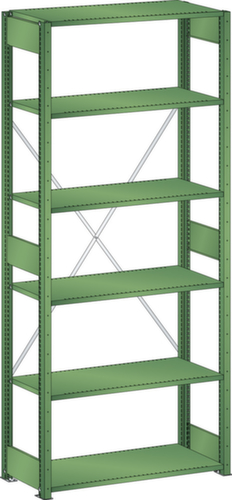 "longDescription": "LISTA Universalregal, BxTxH: 1000x600x2500mm, Anzahl Fachböden: 6 Fachböden geschlitzt, 25mm stark, Ausstattung: Grundfeld mit 2 Regalstützenpaare inkl. 6 Tiefenstreben, 1 Diagonalkreuz verzinkt, Fachlast: 220kg, Max. Feldlast: 2800kg, Farbe: Resedagrün RAL 6011. Schnelle und einfache Montage durch schraubenlose Steckmontage aller Grundbauteile und Fachböden. Jederzeit anpassbar an neues Lagergut durch den flexiblen Ein- und Umbau von Fachböden, Schubladen und Einzelteilen im 25-mm-Raster. Maximale Regalausnutzung dank einer Kantungshöhe der Fachböden von nur 25 mm für volle Ordnerhöhe<br>",
