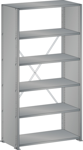 "longDescription": "LISTA Universalregal, BxTxH: 1000x350x2000mm, Anzahl Fachböden: 6 Fachböden glatt, 25mm stark, Ausstattung: Grundfeld mit 2 Vollblech Seitenwände, 1 Diagonalkreuz verzinkt, Fachlast: 80kg, Max. Feldlast: 1000kg, Farbe: Taubengrau NCS S 4502-B. Schnelle und einfache Montage durch schraubenlose Steckmontage aller Grundbauteile und Fachböden. Jederzeit anpassbar an neues Lagergut durch den flexiblen Ein- und Umbau von Fachböden, Schubladen und Einzelteilen im 25-mm-Raster. Maximale Regalausnutzung dank einer Kantungshöhe der Fachböden von nur 25 mm für volle Ordnerhöhe<br>",