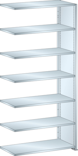 "longDescription": "LISTA Universalregal, BxTxH: 1000x350x2200mm, Anzahl Fachböden: 7 Fachböden glatt, 25mm stark, Ausstattung: Anbaufeld mit 1 Vollblech Seitenwand, Fachlast: 80kg, Max. Feldlast: 1000kg, Farbe: verzinkt. Schnelle und einfache Montage durch schraubenlose Steckmontage aller Grundbauteile und Fachböden. Jederzeit anpassbar an neues Lagergut durch den flexiblen Ein- und Umbau von Fachböden, Schubladen und Einzelteilen im 25-mm-Raster. Maximale Regalausnutzung dank einer Kantungshöhe der Fachböden von nur 25 mm für volle Ordnerhöhe<br>",