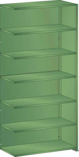 "longDescription": "LISTA Universalregal, BxTxH: 1000x350x2200mm, Anzahl Fachböden: 7 Fachböden glatt, 25mm stark, Ausstattung: Anbaufeld mit 1 Vollblech Seitenwand, 1 Rückwand, glatt (2-teilig), Fachlast: 80kg, Max. Feldlast: 1000kg, Farbe: Resedagrün RAL 6011. Schnelle und einfache Montage durch schraubenlose Steckmontage aller Grundbauteile und Fachböden. Jederzeit anpassbar an neues Lagergut durch den flexiblen Ein- und Umbau von Fachböden, Schubladen und Einzelteilen im 25-mm-Raster. Maximale Regalausnutzung dank einer Kantungshöhe der Fachböden von nur 25 mm für volle Ordnerhöhe<br>",