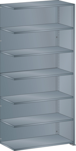 "longDescription": "LISTA Universalregal, BxTxH: 1000x500x2200mm, Anzahl Fachböden: 7 Fachböden glatt, 25mm stark, Ausstattung: Anbaufeld mit 1 Vollblech Seitenwand, 1 Rückwand, glatt (2-teilig), Fachlast: 160kg, Max. Feldlast: 1000kg, Farbe: Grau metallic NCS S 6502-B. Schnelle und einfache Montage durch schraubenlose Steckmontage aller Grundbauteile und Fachböden. Jederzeit anpassbar an neues Lagergut durch den flexiblen Ein- und Umbau von Fachböden, Schubladen und Einzelteilen im 25-mm-Raster. Maximale Regalausnutzung dank einer Kantungshöhe der Fachböden von nur 25 mm für volle Ordnerhöhe<br>",