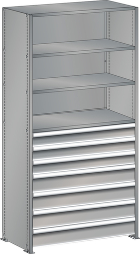 "longDescription": "LISTA Universalregal, BxTxH: 1000x500x2000mm, Anzahl Fachböden: 4 Fachböden glatt, 25mm stark, Ausstattung: Grundfeld mit 2 Vollblech Seitenwände, 1 Rückwand, glatt (2-teilig), 7 Schubladen (3x100mm, 4x150mm, Tragkraft 50kg, Vollauszug), Fachlast: 160kg, Max. Feldlast: 1000kg, Farbe: Taubengrau NCS S 4502-B. Schnelle und einfache Montage durch schraubenlose Steckmontage aller Grundbauteile und Fachböden. Jederzeit anpassbar an neues Lagergut durch den flexiblen Ein- und Umbau von Fachböden, Schubladen und Einzelteilen im 25-mm-Raster. Maximale Regalausnutzung dank einer Kantungshöhe der Fachböden von nur 25 mm für volle Ordnerhöhe<br>",
