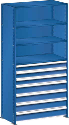 "longDescription": "LISTA Universalregal, BxTxH: 1000x500x2000mm, Anzahl Fachböden: 4 Fachböden glatt, 25mm stark, Ausstattung: Grundfeld mit 2 Vollblech Seitenwände, 1 Rückwand, glatt (2-teilig), 7 Schubladen (3x100mm, 4x150mm, Tragkraft 50kg, Vollauszug), Fachlast: 160kg, Max. Feldlast: 1000kg, Farbe: Signalblau RAL 5005. Schnelle und einfache Montage durch schraubenlose Steckmontage aller Grundbauteile und Fachböden. Jederzeit anpassbar an neues Lagergut durch den flexiblen Ein- und Umbau von Fachböden, Schubladen und Einzelteilen im 25-mm-Raster. Maximale Regalausnutzung dank einer Kantungshöhe der Fachböden von nur 25 mm für volle Ordnerhöhe<br>",