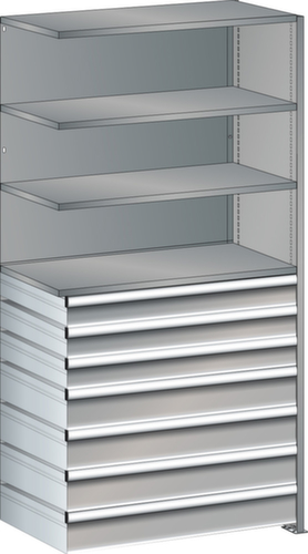 "longDescription": "LISTA Universalregal, BxTxH: 1000x500x2000mm, Anzahl Fachböden: 4 Fachböden glatt, 25mm stark, Ausstattung: Anbaufeld mit 1 Vollblech Seitenwand, 1 Rückwand, glatt (2-teilig), 7 Schubladen (3x100mm, 4x150mm, Tragkraft 50kg, Vollauszug), Fachlast: 160kg, Max. Feldlast: 1000kg, Farbe: Taubengrau NCS S 4502-B. Schnelle und einfache Montage durch schraubenlose Steckmontage aller Grundbauteile und Fachböden. Jederzeit anpassbar an neues Lagergut durch den flexiblen Ein- und Umbau von Fachböden, Schubladen und Einzelteilen im 25-mm-Raster. Maximale Regalausnutzung dank einer Kantungshöhe der Fachböden von nur 25 mm für volle Ordnerhöhe<br>",