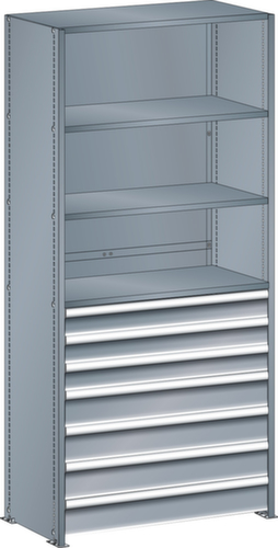 "longDescription": "LISTA Universalregal, BxTxH: 1000x500x2200mm, Anzahl Fachböden: 4 Fachböden glatt, 25mm stark, Ausstattung: Grundfeld mit 2 Vollblech Seitenwände, 1 Rückwand, glatt (2-teilig), 7 Schubladen (3x100mm, 4x150mm, Tragkraft 50kg, Vollauszug), Fachlast: 160kg, Max. Feldlast: 1000kg, Farbe: Grau metallic NCS S 6502-B. Schnelle und einfache Montage durch schraubenlose Steckmontage aller Grundbauteile und Fachböden. Jederzeit anpassbar an neues Lagergut durch den flexiblen Ein- und Umbau von Fachböden, Schubladen und Einzelteilen im 25-mm-Raster. Maximale Regalausnutzung dank einer Kantungshöhe der Fachböden von nur 25 mm für volle Ordnerhöhe<br>",