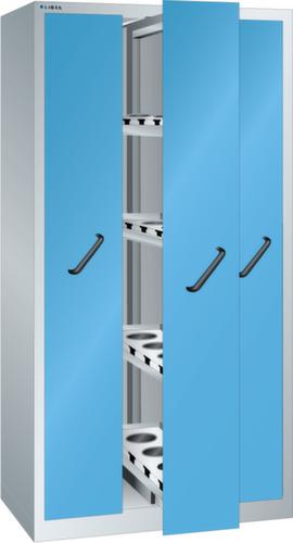 "longDescription": "LISTA Vertikalauszugschrank, BxTxH: 1000x695x1950mm, Anzahl Auszüge: 3 (200kg) à 4 Verstellböden, Ausstattung: mit Frontblenden für NC-Lagerung für LISTA Werkzeughalter, Nutzmasse: BxT 118x554mm, Aufnahmelänge für NC-Werkzeughalter = 554mm, Schliessart: Key Lock, Standard-Schliessung mit Wechselzylinder inkl. 2 Schlüsseln mit Schlüsselnummer, Farbe Gehäuse: Lichtgrau RAL 7035, Farbe Fronten/Türen: Lichtblau RAL 5012. Höchste Stabilität durch eine Gehäusetragkraft bis 1000 kg. Hohe Traglasten: Vertikalauszüge bis 200 kg belastbar. Perfekte Laufruhe selbst bei hohem Gewicht durch Vollauszug auf leichtgängigen Kunststoffrollen. Überzeugende Sicherheit durch Einzelschubladensperre als Kippschutz. Sichere Verschliessbarkeit dank Frontblenden oder Flügeltüren mit Key Lock inkl. Wechselzylinder oder elektronischem Zahlenschloss Code Lock. Flexible Ausstattungsmöglichkeiten mit Verstellböden, Lochwänden und Böden für Werkzeughalter zur NC-Lagerung im 50-mm-Raster. Höchster Bedienkomfort durch direkten, beidseitigen Zugang zu den Werkzeugen und Kleinteilen. Exzellente Schutzeigenschaften gegen Schmutz, Flüssigkeiten und mechanische Beanspruchung durch geschlossenes Gehäuse mit schlag- und abriebfester Oberfläche<br>",