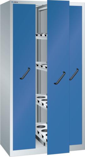 "longDescription": "LISTA Vertikalauszugschrank, BxTxH: 1000x695x1950mm, Anzahl Auszüge: 3 (200kg) à 4 Verstellböden, Ausstattung: mit Frontblenden für NC-Lagerung für LISTA Werkzeughalter, Nutzmasse: BxT 118x554mm, Aufnahmelänge für NC-Werkzeughalter = 554mm, Schliessart: Key Lock, Standard-Schliessung mit Wechselzylinder inkl. 2 Schlüsseln mit Schlüsselnummer, Farbe Gehäuse: Lichtgrau RAL 7035, Farbe Fronten/Türen: Enzianblau RAL 5010. Höchste Stabilität durch eine Gehäusetragkraft bis 1000 kg. Hohe Traglasten: Vertikalauszüge bis 200 kg belastbar. Perfekte Laufruhe selbst bei hohem Gewicht durch Vollauszug auf leichtgängigen Kunststoffrollen. Überzeugende Sicherheit durch Einzelschubladensperre als Kippschutz. Sichere Verschliessbarkeit dank Frontblenden oder Flügeltüren mit Key Lock inkl. Wechselzylinder oder elektronischem Zahlenschloss Code Lock. Flexible Ausstattungsmöglichkeiten mit Verstellböden, Lochwänden und Böden für Werkzeughalter zur NC-Lagerung im 50-mm-Raster. Höchster Bedienkomfort durch direkten, beidseitigen Zugang zu den Werkzeugen und Kleinteilen. Exzellente Schutzeigenschaften gegen Schmutz, Flüssigkeiten und mechanische Beanspruchung durch geschlossenes Gehäuse mit schlag- und abriebfester Oberfläche<br>",