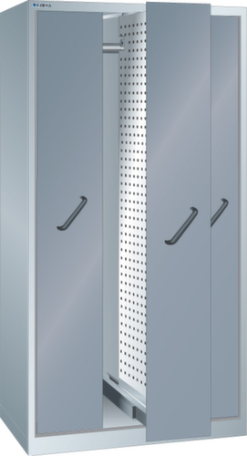 "longDescription": "LISTA Vertikalauszugschrank, BxTxH: 1000x695x1950mm, Anzahl Auszüge: 3 (200kg) inkl. Lochwände mit 4-kant Lochung 10x10mm, Teilung 38mm, Ausstattung: mit Frontblenden und Lochwänden HxT 1700x612mm, beidseitig nutzbar, Schliessart: Key Lock, Standard-Schliessung mit Wechselzylinder inkl. 2 Schlüsseln mit Schlüsselnummer, Farbe Gehäuse: Lichtgrau RAL 7035, Farbe Fronten/Türen: Grau metallic NCS S 6502-B. Höchste Stabilität durch eine Gehäusetragkraft bis 1000 kg. Hohe Traglasten: Vertikalauszüge bis 200 kg belastbar. Perfekte Laufruhe selbst bei hohem Gewicht durch Vollauszug auf leichtgängigen Kunststoffrollen. Überzeugende Sicherheit durch Einzelschubladensperre als Kippschutz. Sichere Verschliessbarkeit dank Frontblenden oder Flügeltüren mit Key Lock inkl. Wechselzylinder oder elektronischem Zahlenschloss Code Lock. Flexible Ausstattungsmöglichkeiten mit Verstellböden, Lochwänden und Böden für Werkzeughalter zur NC-Lagerung im 50-mm-Raster. Höchster Bedienkomfort durch direkten, beidseitigen Zugang zu den Werkzeugen und Kleinteilen. Exzellente Schutzeigenschaften gegen Schmutz, Flüssigkeiten und mechanische Beanspruchung durch geschlossenes Gehäuse mit schlag- und abriebfester Oberfläche<br>",