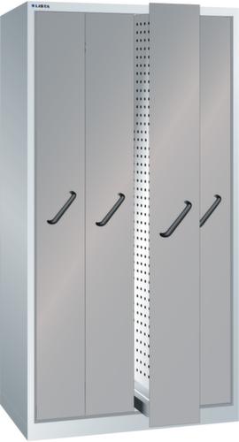 "longDescription": "LISTA Vertikalauszugschrank, BxTxH: 1000x695x1950mm, Anzahl Auszüge: 4 (200kg) inkl. Lochwände mit 4-kant Lochung 10x10mm, Teilung 38mm, Ausstattung: mit Frontblenden und Lochwänden HxT 1700x612mm, beidseitig nutzbar, Schliessart: Key Lock, Standard-Schliessung mit Wechselzylinder inkl. 2 Schlüsseln mit Schlüsselnummer, Farbe Gehäuse: Lichtgrau RAL 7035, Farbe Fronten/Türen: Taubengrau NCS S 4502-B. Höchste Stabilität durch eine Gehäusetragkraft bis 1000 kg. Hohe Traglasten: Vertikalauszüge bis 200 kg belastbar. Perfekte Laufruhe selbst bei hohem Gewicht durch Vollauszug auf leichtgängigen Kunststoffrollen. Überzeugende Sicherheit durch Einzelschubladensperre als Kippschutz. Sichere Verschliessbarkeit dank Frontblenden oder Flügeltüren mit Key Lock inkl. Wechselzylinder oder elektronischem Zahlenschloss Code Lock. Flexible Ausstattungsmöglichkeiten mit Verstellböden, Lochwänden und Böden für Werkzeughalter zur NC-Lagerung im 50-mm-Raster. Höchster Bedienkomfort durch direkten, beidseitigen Zugang zu den Werkzeugen und Kleinteilen. Exzellente Schutzeigenschaften gegen Schmutz, Flüssigkeiten und mechanische Beanspruchung durch geschlossenes Gehäuse mit schlag- und abriebfester Oberfläche<br>",