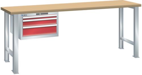 "longDescription": "LISTA Werkbank, Lista Einheit: 27x27E, BxTxH: 1500x700x840mm, Material: Multiplex, Stärke 40mm, inkl. Vormontage und Befestigungsmaterial, Max. Belastung: 600kg, Anzahl Schubladen: 3, Anzahl Fronthöhen (Tragkraft): 1x50mm (75kg), 1x100mm (75kg), 1x150mm (75kg), Schubladen-Nutzfläche BxT: 459x459mm, Schliessart: Key Lock, Standard-Schliessung mit Wechselzylinder inkl. zwei Schlüssel mit Schlüsselnummer, Farbe Gehäuse/Füsse: Lichtgrau RAL 7035, Farbe Schubladen: Rubinrot RAL 3003. Hohe Ausführungsvielfalt dank verschiedener Komponenten, Unterbauten, Materialien und Oberflächen. Jederzeit anpassbar an neue Arbeitsumgebungen durch den flexiblen Ein- und Umbau sämtlicher Komponenten im Baukastensystem. Schnelle und einfache Montage dank Werkbankplatten mit Vorbohrungen inkl. Hülsen zur Befestigung sämtlicher Unterbauten und Schubladenschränke. Allgemeine Vorteile der LISTA-Schubladenschränke<br>",