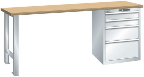 "longDescription": "LISTA Werkbank, Lista Einheit: 27x27E, BxTxH: 1500x700x840mm, Material: Multiplex, Stärke 40mm, inkl. Vormontage und Befestigungsmaterial, Max. Belastung: 1500kg, Anzahl Schubladen: 4, Anzahl Fronthöhen (Tragkraft): 2x100mm (75kg), 1x200mm (75kg), 1x300mm (75kg), Schubladen-Nutzfläche BxT: 459x459mm, Schliessart: Key Lock, Standard-Schliessung mit Wechselzylinder inkl. zwei Schlüssel mit Schlüsselnummer, Farbe Gehäuse/Füsse: Lichtgrau RAL 7035, Farbe Schubladen: Lichtgrau RAL 7035. Hohe Ausführungsvielfalt dank verschiedener Komponenten, Unterbauten, Materialien und Oberflächen. Jederzeit anpassbar an neue Arbeitsumgebungen durch den flexiblen Ein- und Umbau sämtlicher Komponenten im Baukastensystem. Schnelle und einfache Montage dank Werkbankplatten mit Vorbohrungen inkl. Hülsen zur Befestigung sämtlicher Unterbauten und Schubladenschränke. Allgemeine Vorteile der LISTA-Schubladenschränke<br>",
