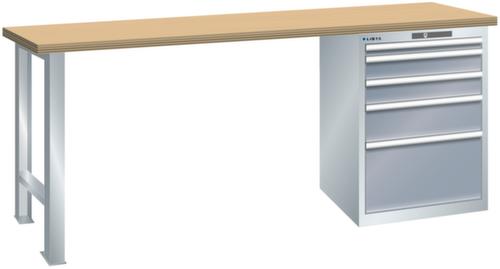 "longDescription": "LISTA Werkbank, Lista Einheit: 27x27E, BxTxH: 1500x700x840mm, Material: Multiplex, Stärke 40mm, inkl. Vormontage und Befestigungsmaterial, Max. Belastung: 1500kg, Anzahl Schubladen: 5, Anzahl Fronthöhen (Tragkraft): 1x50mm (75kg), 2x100mm (75kg), 1x150mm (75kg), 1x300mm (75kg), Schubladen-Nutzfläche BxT: 459x459mm, Schliessart: Key Lock, Standard-Schliessung mit Wechselzylinder inkl. zwei Schlüssel mit Schlüsselnummer, Farbe Gehäuse/Füsse: Lichtgrau RAL 7035, Farbe Schubladen: Grau metallic NCS S 6502-B. Hohe Ausführungsvielfalt dank verschiedener Komponenten, Unterbauten, Materialien und Oberflächen. Jederzeit anpassbar an neue Arbeitsumgebungen durch den flexiblen Ein- und Umbau sämtlicher Komponenten im Baukastensystem. Schnelle und einfache Montage dank Werkbankplatten mit Vorbohrungen inkl. Hülsen zur Befestigung sämtlicher Unterbauten und Schubladenschränke. Allgemeine Vorteile der LISTA-Schubladenschränke<br>",