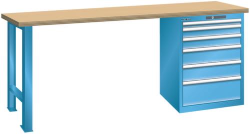 "longDescription": "LISTA Werkbank, Lista Einheit: 27x27E, BxTxH: 1500x700x890mm, Material: Multiplex, Stärke 40mm, inkl. Vormontage und Befestigungsmaterial, Max. Belastung: 1500kg, Anzahl Schubladen: 6, Anzahl Fronthöhen (Tragkraft): 1x50mm (75kg), 2x100mm (75kg), 2x150mm (75kg), 1x200mm (75kg), Schubladen-Nutzfläche BxT: 459x459mm, Schliessart: Code Lock, elektronisches Zahlenschloss mit 10 Ziffern für 4- bis 6-stellige Codes, bis 100 Codes, Farbe Gehäuse/Füsse: Lichtblau RAL 5012, Farbe Schubladen: Lichtblau RAL 5012. Hohe Ausführungsvielfalt dank verschiedener Komponenten, Unterbauten, Materialien und Oberflächen. Jederzeit anpassbar an neue Arbeitsumgebungen durch den flexiblen Ein- und Umbau sämtlicher Komponenten im Baukastensystem. Schnelle und einfache Montage dank Werkbankplatten mit Vorbohrungen inkl. Hülsen zur Befestigung sämtlicher Unterbauten und Schubladenschränke. Allgemeine Vorteile der LISTA-Schubladenschränke<br>",