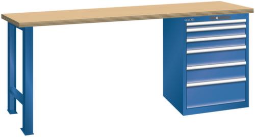 "longDescription": "LISTA Werkbank, Lista Einheit: 27x27E, BxTxH: 1500x700x890mm, Material: Multiplex, Stärke 40mm, inkl. Vormontage und Befestigungsmaterial, Max. Belastung: 1500kg, Anzahl Schubladen: 6, Anzahl Fronthöhen (Tragkraft): 1x50mm (75kg), 2x100mm (75kg), 2x150mm (75kg), 1x200mm (75kg), Schubladen-Nutzfläche BxT: 459x459mm, Schliessart: Code Lock, elektronisches Zahlenschloss mit 10 Ziffern für 4- bis 6-stellige Codes, bis 100 Codes, Farbe Gehäuse/Füsse: Enzianblau RAL 5010, Farbe Schubladen: Enzianblau RAL 5010. Hohe Ausführungsvielfalt dank verschiedener Komponenten, Unterbauten, Materialien und Oberflächen. Jederzeit anpassbar an neue Arbeitsumgebungen durch den flexiblen Ein- und Umbau sämtlicher Komponenten im Baukastensystem. Schnelle und einfache Montage dank Werkbankplatten mit Vorbohrungen inkl. Hülsen zur Befestigung sämtlicher Unterbauten und Schubladenschränke. Allgemeine Vorteile der LISTA-Schubladenschränke<br>",