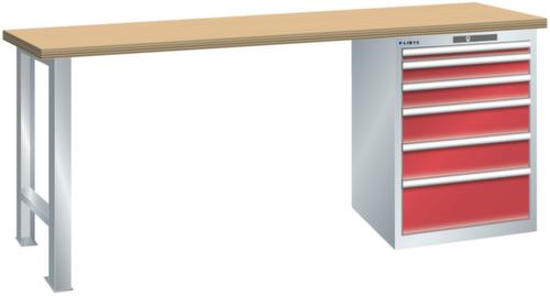 "longDescription": "LISTA Werkbank, Lista Einheit: 27x27E, BxTxH: 1500x700x890mm, Material: Multiplex, Stärke 40mm, inkl. Vormontage und Befestigungsmaterial, Max. Belastung: 1500kg, Anzahl Schubladen: 6, Anzahl Fronthöhen (Tragkraft): 1x50mm (75kg), 2x100mm (75kg), 2x150mm (75kg), 1x200mm (75kg), Schubladen-Nutzfläche BxT: 459x459mm, Schliessart: Code Lock, elektronisches Zahlenschloss mit 10 Ziffern für 4- bis 6-stellige Codes, bis 100 Codes, Farbe Gehäuse/Füsse: Lichtgrau RAL 7035, Farbe Schubladen: Rubinrot RAL 3003. Hohe Ausführungsvielfalt dank verschiedener Komponenten, Unterbauten, Materialien und Oberflächen. Jederzeit anpassbar an neue Arbeitsumgebungen durch den flexiblen Ein- und Umbau sämtlicher Komponenten im Baukastensystem. Schnelle und einfache Montage dank Werkbankplatten mit Vorbohrungen inkl. Hülsen zur Befestigung sämtlicher Unterbauten und Schubladenschränke. Allgemeine Vorteile der LISTA-Schubladenschränke<br>",