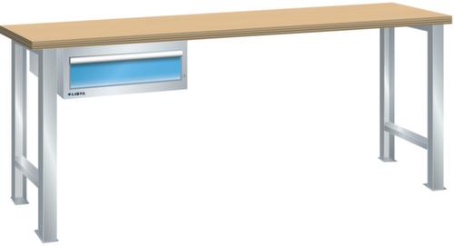 "longDescription": "LISTA Werkbank, Lista Einheit: 27x36E, BxTxH: 2000x750x840mm, Material: Multiplex, Stärke 40mm, inkl. Vormontage und Befestigungsmaterial, Max. Belastung: 360kg, Anzahl Schubladen: 1, Anzahl Fronthöhen (Tragkraft): 1x150mm (75kg), Schubladen-Nutzfläche BxT: 459x612mm, Schliessart: Key Lock, Standard-Schliessung mit Wechselzylinder inkl. zwei Schlüssel mit Schlüsselnummer, Farbe Gehäuse/Füsse: Lichtgrau RAL 7035, Farbe Schubladen: Lichtblau RAL 5012. Hohe Ausführungsvielfalt dank verschiedener Komponenten, Unterbauten, Materialien und Oberflächen. Jederzeit anpassbar an neue Arbeitsumgebungen durch den flexiblen Ein- und Umbau sämtlicher Komponenten im Baukastensystem. Schnelle und einfache Montage dank Werkbankplatten mit Vorbohrungen inkl. Hülsen zur Befestigung sämtlicher Unterbauten und Schubladenschränke. Allgemeine Vorteile der LISTA-Schubladenschränke<br>",