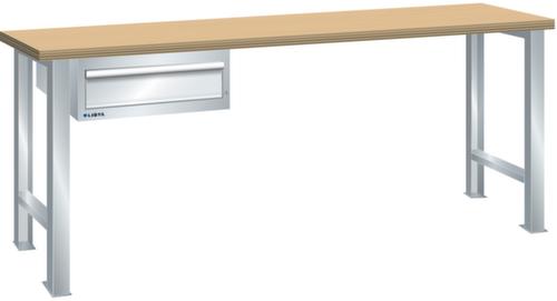 "longDescription": "LISTA Werkbank, Lista Einheit: 27x36E, BxTxH: 2000x750x890mm, Material: Multiplex, Stärke 40mm, inkl. Vormontage und Befestigungsmaterial, Max. Belastung: 360kg, Anzahl Schubladen: 1, Anzahl Fronthöhen (Tragkraft): 1x150mm (75kg), Schubladen-Nutzfläche BxT: 459x612mm, Schliessart: Key Lock, Standard-Schliessung mit Wechselzylinder inkl. zwei Schlüssel mit Schlüsselnummer, Farbe Gehäuse/Füsse: Lichtgrau RAL 7035, Farbe Schubladen: Lichtgrau RAL 7035. Hohe Ausführungsvielfalt dank verschiedener Komponenten, Unterbauten, Materialien und Oberflächen. Jederzeit anpassbar an neue Arbeitsumgebungen durch den flexiblen Ein- und Umbau sämtlicher Komponenten im Baukastensystem. Schnelle und einfache Montage dank Werkbankplatten mit Vorbohrungen inkl. Hülsen zur Befestigung sämtlicher Unterbauten und Schubladenschränke. Allgemeine Vorteile der LISTA-Schubladenschränke<br>",