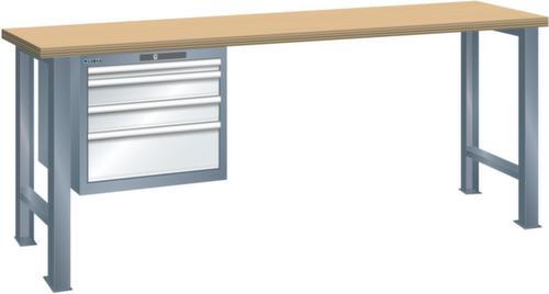 "longDescription": "LISTA Werkbank, Lista Einheit: 27x36E, BxTxH: 1500x750x840mm, Material: Multiplex, Stärke 40mm, inkl. Vormontage und Befestigungsmaterial, Max. Belastung: 600kg, Anzahl Schubladen: 4, Anzahl Fronthöhen (Tragkraft): 1x50mm (75kg), 2x100mm (75kg), 1x200mm (75kg), Schubladen-Nutzfläche BxT: 459x612mm, Schliessart: Code Lock, elektronisches Zahlenschloss mit 10 Ziffern für 4- bis 6-stellige Codes, bis 100 Codes, Farbe Gehäuse/Füsse: Grau metallic NCS S 6502-B, Farbe Schubladen: Lichtgrau RAL 7035. Hohe Ausführungsvielfalt dank verschiedener Komponenten, Unterbauten, Materialien und Oberflächen. Jederzeit anpassbar an neue Arbeitsumgebungen durch den flexiblen Ein- und Umbau sämtlicher Komponenten im Baukastensystem. Schnelle und einfache Montage dank Werkbankplatten mit Vorbohrungen inkl. Hülsen zur Befestigung sämtlicher Unterbauten und Schubladenschränke. Allgemeine Vorteile der LISTA-Schubladenschränke<br>",