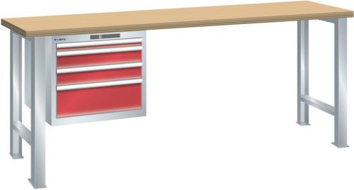"longDescription": "LISTA Werkbank, Lista Einheit: 27x36E, BxTxH: 2000x750x840mm, Material: Multiplex, Stärke 40mm, inkl. Vormontage und Befestigungsmaterial, Max. Belastung: 360kg, Anzahl Schubladen: 4, Anzahl Fronthöhen (Tragkraft): 1x50mm (75kg), 2x100mm (75kg), 1x200mm (75kg), Schubladen-Nutzfläche BxT: 459x612mm, Schliessart: Code Lock, elektronisches Zahlenschloss mit 10 Ziffern für 4- bis 6-stellige Codes, bis 100 Codes, Farbe Gehäuse/Füsse: Lichtgrau RAL 7035, Farbe Schubladen: Rubinrot RAL 3003. Hohe Ausführungsvielfalt dank verschiedener Komponenten, Unterbauten, Materialien und Oberflächen. Jederzeit anpassbar an neue Arbeitsumgebungen durch den flexiblen Ein- und Umbau sämtlicher Komponenten im Baukastensystem. Schnelle und einfache Montage dank Werkbankplatten mit Vorbohrungen inkl. Hülsen zur Befestigung sämtlicher Unterbauten und Schubladenschränke. Allgemeine Vorteile der LISTA-Schubladenschränke<br>",