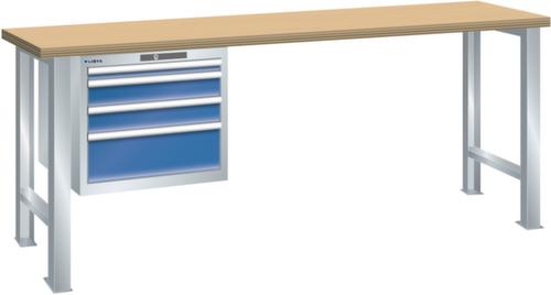 "longDescription": "LISTA Werkbank, Lista Einheit: 27x36E, BxTxH: 1500x750x890mm, Material: Multiplex, Stärke 40mm, inkl. Vormontage und Befestigungsmaterial, Max. Belastung: 600kg, Anzahl Schubladen: 4, Anzahl Fronthöhen (Tragkraft): 1x50mm (75kg), 2x100mm (75kg), 1x200mm (75kg), Schubladen-Nutzfläche BxT: 459x612mm, Schliessart: Code Lock, elektronisches Zahlenschloss mit 10 Ziffern für 4- bis 6-stellige Codes, bis 100 Codes, Farbe Gehäuse/Füsse: Lichtgrau RAL 7035, Farbe Schubladen: Signalblau RAL 5005. Hohe Ausführungsvielfalt dank verschiedener Komponenten, Unterbauten, Materialien und Oberflächen. Jederzeit anpassbar an neue Arbeitsumgebungen durch den flexiblen Ein- und Umbau sämtlicher Komponenten im Baukastensystem. Schnelle und einfache Montage dank Werkbankplatten mit Vorbohrungen inkl. Hülsen zur Befestigung sämtlicher Unterbauten und Schubladenschränke. Allgemeine Vorteile der LISTA-Schubladenschränke<br>",
