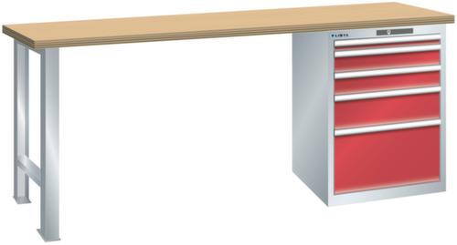 "longDescription": "LISTA Werkbank, Lista Einheit: 27x36E, BxTxH: 2000x750x840mm, Material: Multiplex, Stärke 40mm, inkl. Vormontage und Befestigungsmaterial, Max. Belastung: 800kg, Anzahl Schubladen: 5, Anzahl Fronthöhen (Tragkraft): 1x50mm (75kg), 2x100mm (75kg), 1x150mm (75kg), 1x300mm (75kg), Schubladen-Nutzfläche BxT: 459x612mm, Schliessart: Key Lock, Standard-Schliessung mit Wechselzylinder inkl. zwei Schlüssel mit Schlüsselnummer, Farbe Gehäuse/Füsse: Lichtgrau RAL 7035, Farbe Schubladen: Rubinrot RAL 3003. Hohe Ausführungsvielfalt dank verschiedener Komponenten, Unterbauten, Materialien und Oberflächen. Jederzeit anpassbar an neue Arbeitsumgebungen durch den flexiblen Ein- und Umbau sämtlicher Komponenten im Baukastensystem. Schnelle und einfache Montage dank Werkbankplatten mit Vorbohrungen inkl. Hülsen zur Befestigung sämtlicher Unterbauten und Schubladenschränke. Allgemeine Vorteile der LISTA-Schubladenschränke<br>",