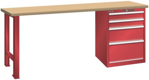 "longDescription": "LISTA Werkbank, Lista Einheit: 27x36E, BxTxH: 1500x750x840mm, Material: Multiplex, Stärke 40mm, inkl. Vormontage und Befestigungsmaterial, Max. Belastung: 1500kg, Anzahl Schubladen: 4, Anzahl Fronthöhen (Tragkraft): 2x100mm (75kg), 1x200mm (75kg), 1x300mm (75kg), Schubladen-Nutzfläche BxT: 459x612mm, Schliessart: Code Lock, elektronisches Zahlenschloss mit 10 Ziffern für 4- bis 6-stellige Codes, bis 100 Codes, Farbe Gehäuse/Füsse: Rubinrot RAL 3003, Farbe Schubladen: Rubinrot RAL 3003. Hohe Ausführungsvielfalt dank verschiedener Komponenten, Unterbauten, Materialien und Oberflächen. Jederzeit anpassbar an neue Arbeitsumgebungen durch den flexiblen Ein- und Umbau sämtlicher Komponenten im Baukastensystem. Schnelle und einfache Montage dank Werkbankplatten mit Vorbohrungen inkl. Hülsen zur Befestigung sämtlicher Unterbauten und Schubladenschränke. Allgemeine Vorteile der LISTA-Schubladenschränke<br>",