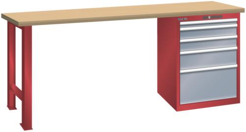 "longDescription": "LISTA Werkbank, Lista Einheit: 27x36E, BxTxH: 1500x750x840mm, Material: Multiplex, Stärke 40mm, inkl. Vormontage und Befestigungsmaterial, Max. Belastung: 1500kg, Anzahl Schubladen: 5, Anzahl Fronthöhen (Tragkraft): 1x50mm (75kg), 2x100mm (75kg), 1x150mm (75kg), 1x300mm (75kg), Schubladen-Nutzfläche BxT: 459x612mm, Schliessart: Code Lock, elektronisches Zahlenschloss mit 10 Ziffern für 4- bis 6-stellige Codes, bis 100 Codes, Farbe Gehäuse/Füsse: Rubinrot RAL 3003, Farbe Schubladen: Grau metallic NCS S 6502-B. Hohe Ausführungsvielfalt dank verschiedener Komponenten, Unterbauten, Materialien und Oberflächen. Jederzeit anpassbar an neue Arbeitsumgebungen durch den flexiblen Ein- und Umbau sämtlicher Komponenten im Baukastensystem. Schnelle und einfache Montage dank Werkbankplatten mit Vorbohrungen inkl. Hülsen zur Befestigung sämtlicher Unterbauten und Schubladenschränke. Allgemeine Vorteile der LISTA-Schubladenschränke<br>",