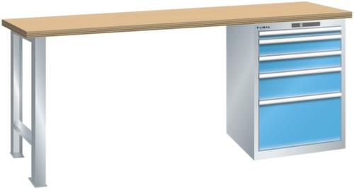 "longDescription": "LISTA Werkbank, Lista Einheit: 27x36E, BxTxH: 2000x750x840mm, Material: Multiplex, Stärke 40mm, inkl. Vormontage und Befestigungsmaterial, Max. Belastung: 800kg, Anzahl Schubladen: 5, Anzahl Fronthöhen (Tragkraft): 1x50mm (75kg), 2x100mm (75kg), 1x150mm (75kg), 1x300mm (75kg), Schubladen-Nutzfläche BxT: 459x612mm, Schliessart: Code Lock, elektronisches Zahlenschloss mit 10 Ziffern für 4- bis 6-stellige Codes, bis 100 Codes, Farbe Gehäuse/Füsse: Lichtgrau RAL 7035, Farbe Schubladen: Lichtblau RAL 5012. Hohe Ausführungsvielfalt dank verschiedener Komponenten, Unterbauten, Materialien und Oberflächen. Jederzeit anpassbar an neue Arbeitsumgebungen durch den flexiblen Ein- und Umbau sämtlicher Komponenten im Baukastensystem. Schnelle und einfache Montage dank Werkbankplatten mit Vorbohrungen inkl. Hülsen zur Befestigung sämtlicher Unterbauten und Schubladenschränke. Allgemeine Vorteile der LISTA-Schubladenschränke<br>",