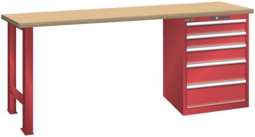 "longDescription": "LISTA Werkbank, Lista Einheit: 27x36E, BxTxH: 2000x750x890mm, Material: Multiplex, Stärke 40mm, inkl. Vormontage und Befestigungsmaterial, Max. Belastung: 800kg, Anzahl Schubladen: 5, Anzahl Fronthöhen (Tragkraft): 2x100mm (75kg), 1x150mm (75kg), 2x200mm (75kg), Schubladen-Nutzfläche BxT: 459x612mm, Schliessart: Code Lock, elektronisches Zahlenschloss mit 10 Ziffern für 4- bis 6-stellige Codes, bis 100 Codes, Farbe Gehäuse/Füsse: Rubinrot RAL 3003, Farbe Schubladen: Rubinrot RAL 3003. Hohe Ausführungsvielfalt dank verschiedener Komponenten, Unterbauten, Materialien und Oberflächen. Jederzeit anpassbar an neue Arbeitsumgebungen durch den flexiblen Ein- und Umbau sämtlicher Komponenten im Baukastensystem. Schnelle und einfache Montage dank Werkbankplatten mit Vorbohrungen inkl. Hülsen zur Befestigung sämtlicher Unterbauten und Schubladenschränke. Allgemeine Vorteile der LISTA-Schubladenschränke<br>",