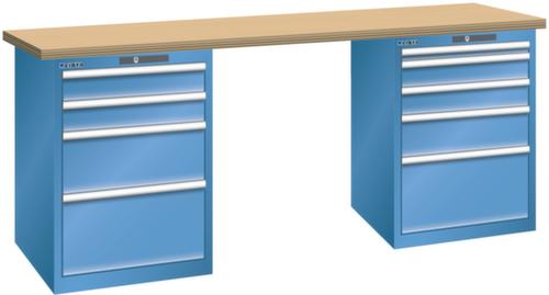 "longDescription": "LISTA Werkbank, Lista Einheit: 27x36E, BxTxH: 2000x750x840mm, Material: Multiplex, Stärke 40mm, inkl. Vormontage und Befestigungsmaterial, Max. Belastung: 800kg, Anzahl Schubladen: 4 & 5, Anzahl Fronthöhen (Tragkraft): 2x100mm (75kg), 1x200mm (75kg), 1x300mm (75kg) und 1x50mm (75kg), 2x100mm (75kg), 1x150mm (75kg), 1x300mm (75kg), , Schubladen-Nutzfläche BxT: 459x612mm, Schliessart: Code Lock, elektronisches Zahlenschloss mit 10 Ziffern für 4- bis 6-stellige Codes, bis 100 Codes, Farbe Gehäuse/Füsse: Capriblau RAL 5019, Farbe Schubladen: Capriblau RAL 5019. Hohe Ausführungsvielfalt dank verschiedener Komponenten, Unterbauten, Materialien und Oberflächen. Jederzeit anpassbar an neue Arbeitsumgebungen durch den flexiblen Ein- und Umbau sämtlicher Komponenten im Baukastensystem. Schnelle und einfache Montage dank Werkbankplatten mit Vorbohrungen inkl. Hülsen zur Befestigung sämtlicher Unterbauten und Schubladenschränke. Allgemeine Vorteile der LISTA-Schubladenschränke<br>",