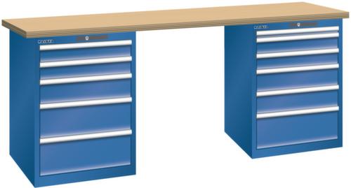 "longDescription": "LISTA Werkbank, Lista Einheit: 27x36E, BxTxH: 2000x750x890mm, Material: Multiplex, Stärke 40mm, inkl. Vormontage und Befestigungsmaterial, Max. Belastung: 800kg, Anzahl Schubladen: 5 & 6, Anzahl Fronthöhen (Tragkraft): 2x100mm (75kg), 1x150mm (75kg), 2x200mm (75kg) und 1x50mm (75kg), 2x100mm (75kg), 2x150mm (75kg), 1x200mm (75kg), Schubladen-Nutzfläche BxT: 459x612mm, Schliessart: Key Lock, Standard-Schliessung mit Wechselzylinder inkl. zwei Schlüssel mit Schlüsselnummer, Farbe Gehäuse/Füsse: Enzianblau RAL 5010, Farbe Schubladen: Enzianblau RAL 5010. Hohe Ausführungsvielfalt dank verschiedener Komponenten, Unterbauten, Materialien und Oberflächen. Jederzeit anpassbar an neue Arbeitsumgebungen durch den flexiblen Ein- und Umbau sämtlicher Komponenten im Baukastensystem. Schnelle und einfache Montage dank Werkbankplatten mit Vorbohrungen inkl. Hülsen zur Befestigung sämtlicher Unterbauten und Schubladenschränke. Allgemeine Vorteile der LISTA-Schubladenschränke<br>",