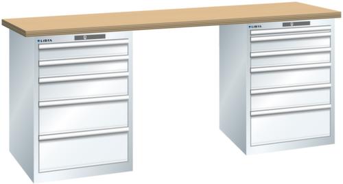 "longDescription": "LISTA Werkbank, Lista Einheit: 27x36E, BxTxH: 2000x750x890mm, Material: Multiplex, Stärke 40mm, inkl. Vormontage und Befestigungsmaterial, Max. Belastung: 800kg, Anzahl Schubladen: 5 & 6, Anzahl Fronthöhen (Tragkraft): 2x100mm (75kg), 1x150mm (75kg), 2x200mm (75kg) und 1x50mm (75kg), 2x100mm (75kg), 2x150mm (75kg), 1x200mm (75kg), Schubladen-Nutzfläche BxT: 459x612mm, Schliessart: Key Lock, Standard-Schliessung mit Wechselzylinder inkl. zwei Schlüssel mit Schlüsselnummer, Farbe Gehäuse/Füsse: Reinweiss RAL 9010, Farbe Schubladen: Reinweiss RAL 9010. Hohe Ausführungsvielfalt dank verschiedener Komponenten, Unterbauten, Materialien und Oberflächen. Jederzeit anpassbar an neue Arbeitsumgebungen durch den flexiblen Ein- und Umbau sämtlicher Komponenten im Baukastensystem. Schnelle und einfache Montage dank Werkbankplatten mit Vorbohrungen inkl. Hülsen zur Befestigung sämtlicher Unterbauten und Schubladenschränke. Allgemeine Vorteile der LISTA-Schubladenschränke<br>",