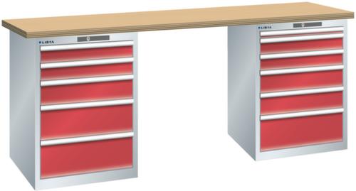"longDescription": "LISTA Werkbank, Lista Einheit: 27x36E, BxTxH: 2000x750x890mm, Material: Multiplex, Stärke 40mm, inkl. Vormontage und Befestigungsmaterial, Max. Belastung: 800kg, Anzahl Schubladen: 5 & 6, Anzahl Fronthöhen (Tragkraft): 2x100mm (75kg), 1x150mm (75kg), 2x200mm (75kg) und 1x50mm (75kg), 2x100mm (75kg), 2x150mm (75kg), 1x200mm (75kg), Schubladen-Nutzfläche BxT: 459x612mm, Schliessart: Key Lock, Standard-Schliessung mit Wechselzylinder inkl. zwei Schlüssel mit Schlüsselnummer, Farbe Gehäuse/Füsse: Lichtgrau RAL 7035, Farbe Schubladen: Rubinrot RAL 3003. Hohe Ausführungsvielfalt dank verschiedener Komponenten, Unterbauten, Materialien und Oberflächen. Jederzeit anpassbar an neue Arbeitsumgebungen durch den flexiblen Ein- und Umbau sämtlicher Komponenten im Baukastensystem. Schnelle und einfache Montage dank Werkbankplatten mit Vorbohrungen inkl. Hülsen zur Befestigung sämtlicher Unterbauten und Schubladenschränke. Allgemeine Vorteile der LISTA-Schubladenschränke<br>",