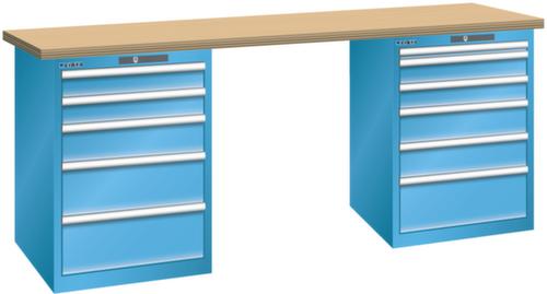 "longDescription": "LISTA Werkbank, Lista Einheit: 27x36E, BxTxH: 2000x750x890mm, Material: Multiplex, Stärke 40mm, inkl. Vormontage und Befestigungsmaterial, Max. Belastung: 800kg, Anzahl Schubladen: 5 & 6, Anzahl Fronthöhen (Tragkraft): 2x100mm (75kg), 1x150mm (75kg), 2x200mm (75kg) und 1x50mm (75kg), 2x100mm (75kg), 2x150mm (75kg), 1x200mm (75kg), Schubladen-Nutzfläche BxT: 459x612mm, Schliessart: Code Lock, elektronisches Zahlenschloss mit 10 Ziffern für 4- bis 6-stellige Codes, bis 100 Codes, Farbe Gehäuse/Füsse: Lichtblau RAL 5012, Farbe Schubladen: Lichtblau RAL 5012. Hohe Ausführungsvielfalt dank verschiedener Komponenten, Unterbauten, Materialien und Oberflächen. Jederzeit anpassbar an neue Arbeitsumgebungen durch den flexiblen Ein- und Umbau sämtlicher Komponenten im Baukastensystem. Schnelle und einfache Montage dank Werkbankplatten mit Vorbohrungen inkl. Hülsen zur Befestigung sämtlicher Unterbauten und Schubladenschränke. Allgemeine Vorteile der LISTA-Schubladenschränke<br>",