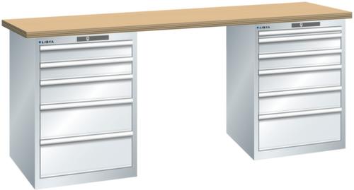 "longDescription": "LISTA Werkbank, Lista Einheit: 27x36E, BxTxH: 2000x750x890mm, Material: Multiplex, Stärke 40mm, inkl. Vormontage und Befestigungsmaterial, Max. Belastung: 800kg, Anzahl Schubladen: 5 & 6, Anzahl Fronthöhen (Tragkraft): 2x100mm (75kg), 1x150mm (75kg), 2x200mm (75kg) und 1x50mm (75kg), 2x100mm (75kg), 2x150mm (75kg), 1x200mm (75kg), Schubladen-Nutzfläche BxT: 459x612mm, Schliessart: Code Lock, elektronisches Zahlenschloss mit 10 Ziffern für 4- bis 6-stellige Codes, bis 100 Codes, Farbe Gehäuse/Füsse: Lichtgrau RAL 7035, Farbe Schubladen: Lichtgrau RAL 7035. Hohe Ausführungsvielfalt dank verschiedener Komponenten, Unterbauten, Materialien und Oberflächen. Jederzeit anpassbar an neue Arbeitsumgebungen durch den flexiblen Ein- und Umbau sämtlicher Komponenten im Baukastensystem. Schnelle und einfache Montage dank Werkbankplatten mit Vorbohrungen inkl. Hülsen zur Befestigung sämtlicher Unterbauten und Schubladenschränke. Allgemeine Vorteile der LISTA-Schubladenschränke<br>",