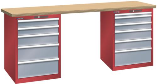 "longDescription": "LISTA Werkbank, Lista Einheit: 27x36E, BxTxH: 2000x750x890mm, Material: Multiplex, Stärke 40mm, inkl. Vormontage und Befestigungsmaterial, Max. Belastung: 800kg, Anzahl Schubladen: 5 & 6, Anzahl Fronthöhen (Tragkraft): 2x100mm (75kg), 1x150mm (75kg), 2x200mm (75kg) und 1x50mm (75kg), 2x100mm (75kg), 2x150mm (75kg), 1x200mm (75kg), Schubladen-Nutzfläche BxT: 459x612mm, Schliessart: Code Lock, elektronisches Zahlenschloss mit 10 Ziffern für 4- bis 6-stellige Codes, bis 100 Codes, Farbe Gehäuse/Füsse: Rubinrot RAL 3003, Farbe Schubladen: Grau metallic NCS S 6502-B. Hohe Ausführungsvielfalt dank verschiedener Komponenten, Unterbauten, Materialien und Oberflächen. Jederzeit anpassbar an neue Arbeitsumgebungen durch den flexiblen Ein- und Umbau sämtlicher Komponenten im Baukastensystem. Schnelle und einfache Montage dank Werkbankplatten mit Vorbohrungen inkl. Hülsen zur Befestigung sämtlicher Unterbauten und Schubladenschränke. Allgemeine Vorteile der LISTA-Schubladenschränke<br>",