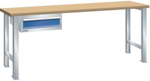 "longDescription": "LISTA Werkbank, Lista Einheit: 27x36E, BxTxH: 1500x800x900mm, Material: Buche, Stärke 50mm, inkl. Vormontage und Befestigungsmaterial, Max. Belastung: 800kg, Anzahl Schubladen: 1, Anzahl Fronthöhen (Tragkraft): 1x150mm (75kg), Schubladen-Nutzfläche BxT: 459x612mm, Schliessart: Key Lock, Standard-Schliessung mit Wechselzylinder inkl. zwei Schlüssel mit Schlüsselnummer, Farbe Gehäuse/Füsse: Lichtgrau RAL 7035, Farbe Schubladen: Signalblau RAL 5005. Hohe Ausführungsvielfalt dank verschiedener Komponenten, Unterbauten, Materialien und Oberflächen. Jederzeit anpassbar an neue Arbeitsumgebungen durch den flexiblen Ein- und Umbau sämtlicher Komponenten im Baukastensystem. Schnelle und einfache Montage dank Werkbankplatten mit Vorbohrungen inkl. Hülsen zur Befestigung sämtlicher Unterbauten und Schubladenschränke. Allgemeine Vorteile der LISTA-Schubladenschränke<br>",