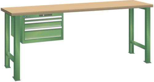 "longDescription": "LISTA Werkbank, Lista Einheit: 27x36E, BxTxH: 2000x800x850mm, Material: Buche, Stärke 50mm, inkl. Vormontage und Befestigungsmaterial, Max. Belastung: 500kg, Anzahl Schubladen: 3, Anzahl Fronthöhen (Tragkraft): 1x50mm (75kg), 1x100mm (75kg), 1x150mm (75kg), Schubladen-Nutzfläche BxT: 459x612mm, Schliessart: Key Lock, Standard-Schliessung mit Wechselzylinder inkl. zwei Schlüssel mit Schlüsselnummer, Farbe Gehäuse/Füsse: Resedagrün RAL 6011, Farbe Schubladen: Resedagrün RAL 6011. Hohe Ausführungsvielfalt dank verschiedener Komponenten, Unterbauten, Materialien und Oberflächen. Jederzeit anpassbar an neue Arbeitsumgebungen durch den flexiblen Ein- und Umbau sämtlicher Komponenten im Baukastensystem. Schnelle und einfache Montage dank Werkbankplatten mit Vorbohrungen inkl. Hülsen zur Befestigung sämtlicher Unterbauten und Schubladenschränke. Allgemeine Vorteile der LISTA-Schubladenschränke<br>",