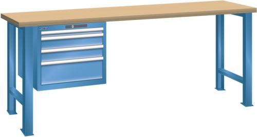 "longDescription": "LISTA Werkbank, Lista Einheit: 27x36E, BxTxH: 1500x800x850mm, Material: Buche, Stärke 50mm, inkl. Vormontage und Befestigungsmaterial, Max. Belastung: 800kg, Anzahl Schubladen: 4, Anzahl Fronthöhen (Tragkraft): 1x50mm (75kg), 2x100mm (75kg), 1x200mm (75kg), Schubladen-Nutzfläche BxT: 459x612mm, Schliessart: Code Lock, elektronisches Zahlenschloss mit 10 Ziffern für 4- bis 6-stellige Codes, bis 100 Codes, Farbe Gehäuse/Füsse: Capriblau RAL 5019, Farbe Schubladen: Capriblau RAL 5019. Hohe Ausführungsvielfalt dank verschiedener Komponenten, Unterbauten, Materialien und Oberflächen. Jederzeit anpassbar an neue Arbeitsumgebungen durch den flexiblen Ein- und Umbau sämtlicher Komponenten im Baukastensystem. Schnelle und einfache Montage dank Werkbankplatten mit Vorbohrungen inkl. Hülsen zur Befestigung sämtlicher Unterbauten und Schubladenschränke. Allgemeine Vorteile der LISTA-Schubladenschränke<br>",