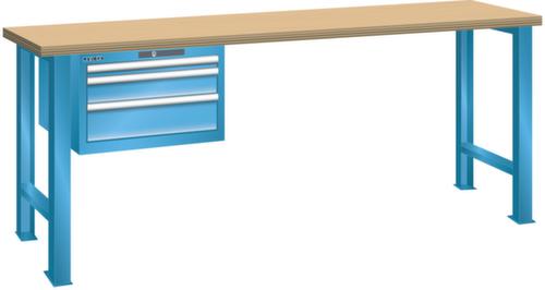"longDescription": "LISTA Werkbank, Lista Einheit: 27x36E, BxTxH: 1500x800x900mm, Material: Buche, Stärke 50mm, inkl. Vormontage und Befestigungsmaterial, Max. Belastung: 800kg, Anzahl Schubladen: 3, Anzahl Fronthöhen (Tragkraft): 1x50mm (75kg), 1x100mm (75kg), 1x150mm (75kg), Schubladen-Nutzfläche BxT: 459x612mm, Schliessart: Code Lock, elektronisches Zahlenschloss mit 10 Ziffern für 4- bis 6-stellige Codes, bis 100 Codes, Farbe Gehäuse/Füsse: Lichtblau RAL 5012, Farbe Schubladen: Lichtblau RAL 5012. Hohe Ausführungsvielfalt dank verschiedener Komponenten, Unterbauten, Materialien und Oberflächen. Jederzeit anpassbar an neue Arbeitsumgebungen durch den flexiblen Ein- und Umbau sämtlicher Komponenten im Baukastensystem. Schnelle und einfache Montage dank Werkbankplatten mit Vorbohrungen inkl. Hülsen zur Befestigung sämtlicher Unterbauten und Schubladenschränke. Allgemeine Vorteile der LISTA-Schubladenschränke<br>",