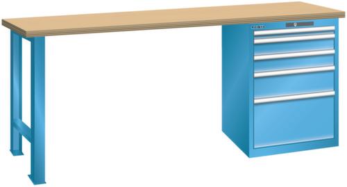 "longDescription": "LISTA Werkbank, Lista Einheit: 27x36E, BxTxH: 1500x800x850mm, Material: Buche, Stärke 50mm, inkl. Vormontage und Befestigungsmaterial, Max. Belastung: 1500kg, Anzahl Schubladen: 5, Anzahl Fronthöhen (Tragkraft): 1x50mm (75kg), 2x100mm (75kg), 1x150mm (75kg), 1x300mm (75kg), Schubladen-Nutzfläche BxT: 459x612mm, Schliessart: Key Lock, Standard-Schliessung mit Wechselzylinder inkl. zwei Schlüssel mit Schlüsselnummer, Farbe Gehäuse/Füsse: Lichtblau RAL 5012, Farbe Schubladen: Lichtblau RAL 5012. Hohe Ausführungsvielfalt dank verschiedener Komponenten, Unterbauten, Materialien und Oberflächen. Jederzeit anpassbar an neue Arbeitsumgebungen durch den flexiblen Ein- und Umbau sämtlicher Komponenten im Baukastensystem. Schnelle und einfache Montage dank Werkbankplatten mit Vorbohrungen inkl. Hülsen zur Befestigung sämtlicher Unterbauten und Schubladenschränke. Allgemeine Vorteile der LISTA-Schubladenschränke<br>",