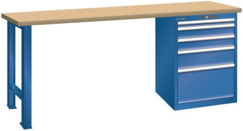 "longDescription": "LISTA Werkbank, Lista Einheit: 27x36E, BxTxH: 2000x800x850mm, Material: Buche, Stärke 50mm, inkl. Vormontage und Befestigungsmaterial, Max. Belastung: 1000kg, Anzahl Schubladen: 5, Anzahl Fronthöhen (Tragkraft): 1x50mm (75kg), 2x100mm (75kg), 1x150mm (75kg), 1x300mm (75kg), Schubladen-Nutzfläche BxT: 459x612mm, Schliessart: Key Lock, Standard-Schliessung mit Wechselzylinder inkl. zwei Schlüssel mit Schlüsselnummer, Farbe Gehäuse/Füsse: Enzianblau RAL 5010, Farbe Schubladen: Enzianblau RAL 5010. Hohe Ausführungsvielfalt dank verschiedener Komponenten, Unterbauten, Materialien und Oberflächen. Jederzeit anpassbar an neue Arbeitsumgebungen durch den flexiblen Ein- und Umbau sämtlicher Komponenten im Baukastensystem. Schnelle und einfache Montage dank Werkbankplatten mit Vorbohrungen inkl. Hülsen zur Befestigung sämtlicher Unterbauten und Schubladenschränke. Allgemeine Vorteile der LISTA-Schubladenschränke<br>",